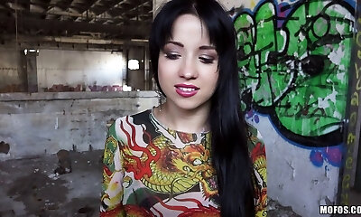 Colorful Russian girl sucks a cock in public for some money