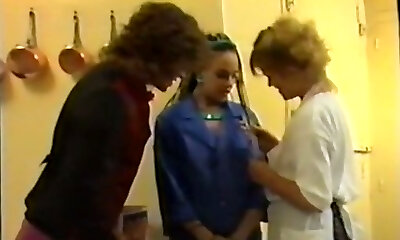 Hairy pussy ate and fisted during lesbian threesome