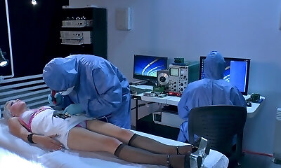 un médecin fou converse avec une jolie blonde platine fesser pour baiser avec lui