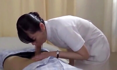 une infirmière japonaise guérit le fille en lui fournissant une branlette à gorge profonde