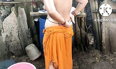 Anita yadav bathing outside with sizzling