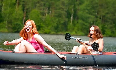 2 pervy mature bitches share cock for wild ride near the riverside