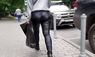 Sweet woman's ass in leather pants