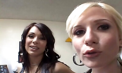 Diamond Foxxx sucks 2 hard schlongs before taking them in her insides