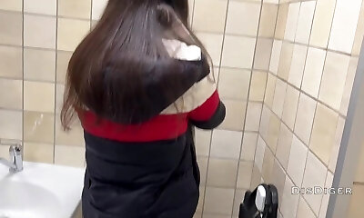 Pervy Pinkhead Japanese babe demonstrating her pussy in public and fucks in toilet with a stranger