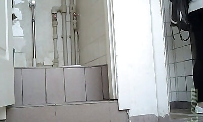 Mature Asian lady in the well-worn toilet room filmed on hidden cam