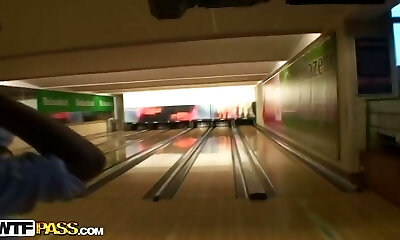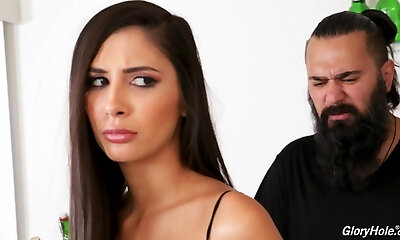 Big tits unexperienced steps into the toilet for a doggy fashion fucking through a glory hole