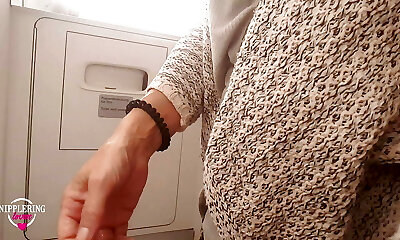 nippleringlover horny milf pissing on public toilet in airplane flashing pierced pussy and extreme pierced nips