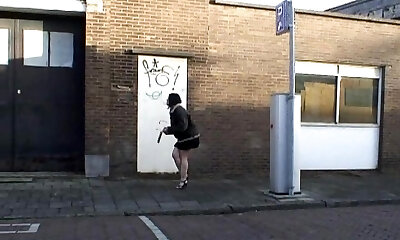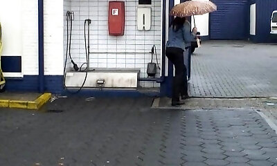 Curvy white lady in tight jeans shows her big ass on voyeur cam