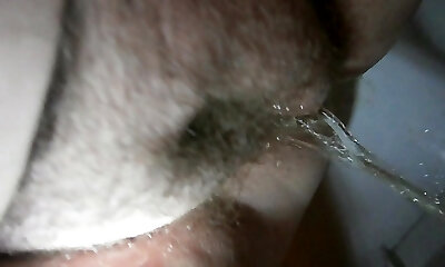 After urinating, she takes a bathtub after which she stands with her hairy cunt